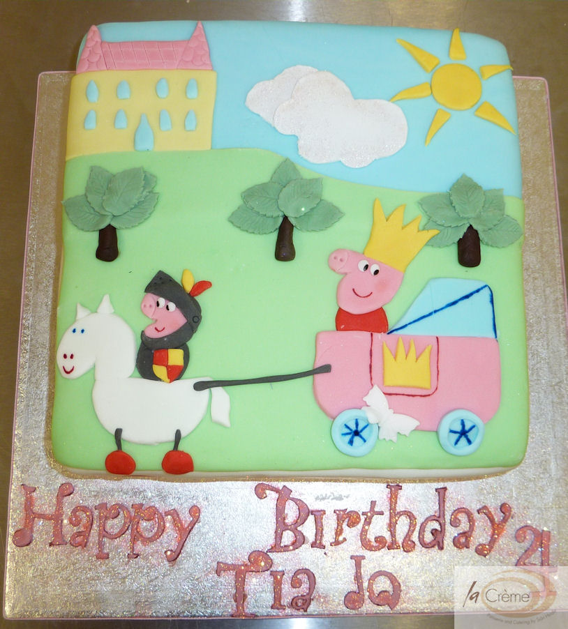 For the Peppa Pig cake we delivered this to New Dock Stars Clubhouse in Llanelli. The organiser rang to ask for a peppa pig cake and the design she wanted was the design on a child's lunch box which showed Peppa Pig The Brave. Mel was able to download a copy of the image and then she decorated the cake in a patch work quilt style. Needless to say she did an amazing job.